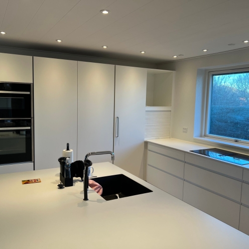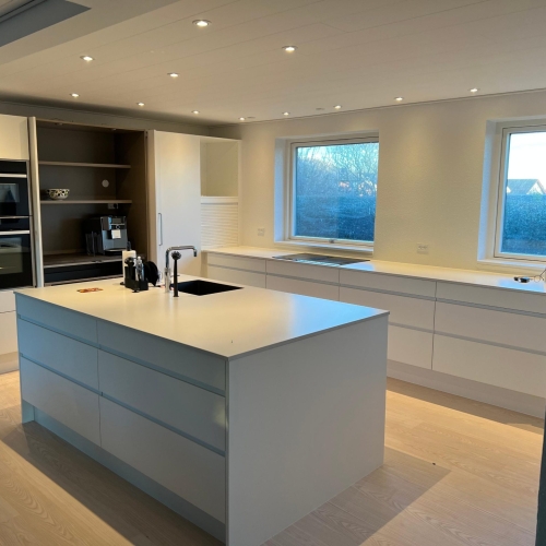 Når vi går i gang med dit køkkenprojekt, vil vi først lytte til dine behov, ønsker og budget. Vi vil rådgive dig om valg af materialer, design og indretning, så du får det køkken, du drømmer om. Vi har et bredt udvalg af køkkener at vælge imellem, uanset om du foretrækker et bestemt mærke eller en særlig stil.